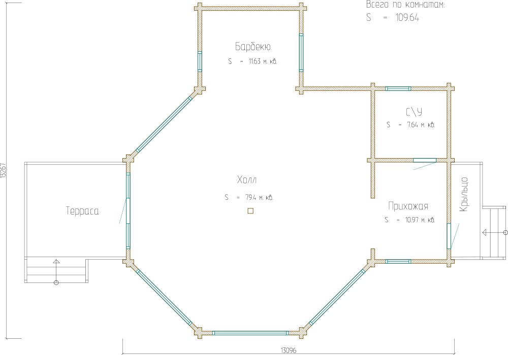 Площадь 1 этажа: 109.64 м